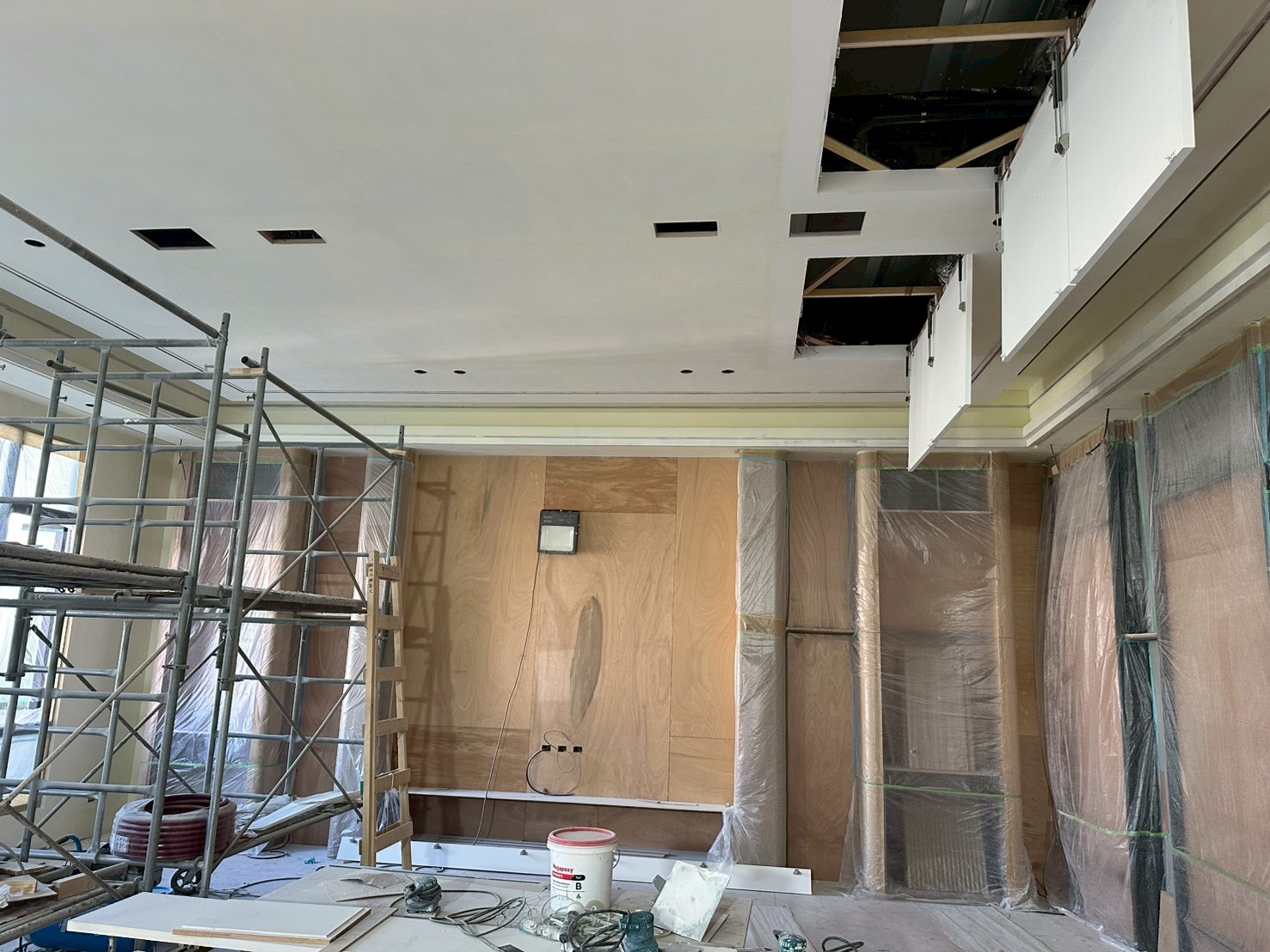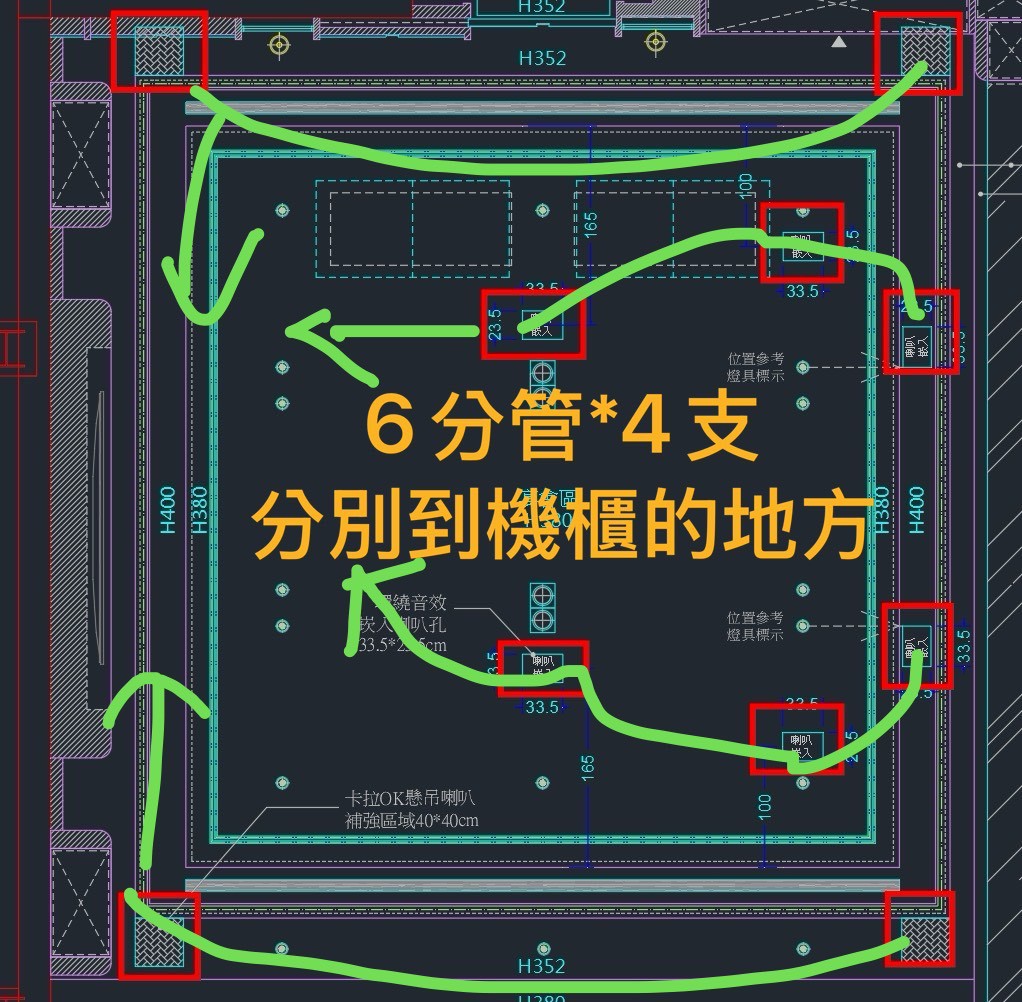 ● 音響系統管線與設備位置的預留施工:在裝修過程中,必須預留足夠的管線空間和安裝位置,這是音響設備能夠順利安裝的基礎。包括喇叭的位置、訊號線的佈局、設備的儲存空間以及天花板預留孔位等,這些都應該在裝修過程中事先設置。