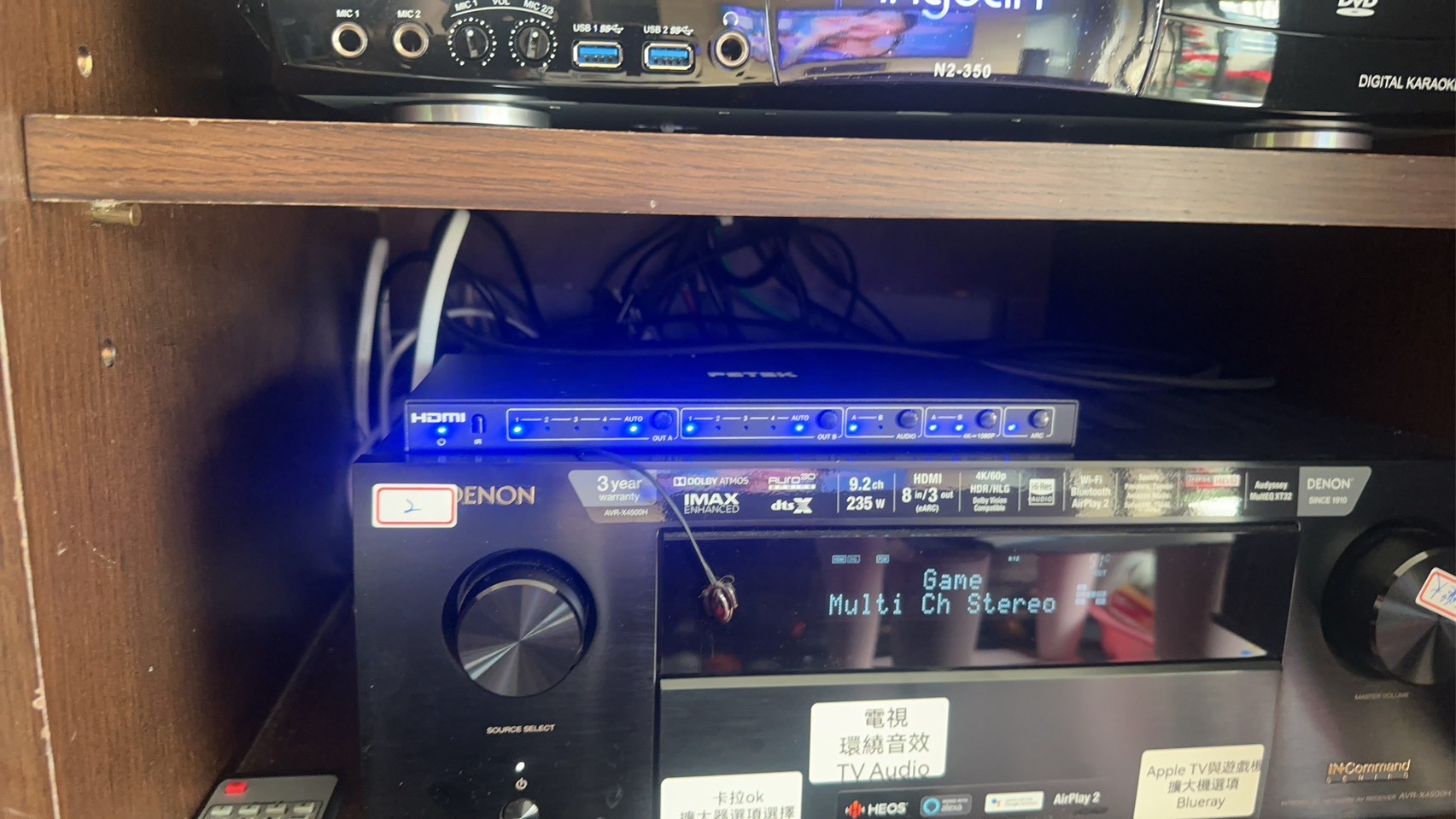 要在同一套影音系統中實現家庭劇院與卡拉OK的雙重功能,設備的選配與訊號管理至關重要。核心設備:Denon AVR-X4500H 9.2聲道擴大機